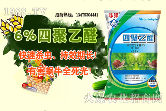 在螺類害蟲防治產(chǎn)品中,四聚乙醛是高效低毒、環(huán)保的選擇性殺螺劑。不殺傷益蟲,如蚯蚓或步行蟲。
