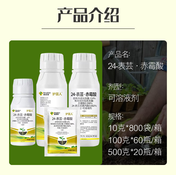 【產(chǎn)品名稱】:24-表蕓·赤霉酸可溶液劑-護苗人-恒金諾