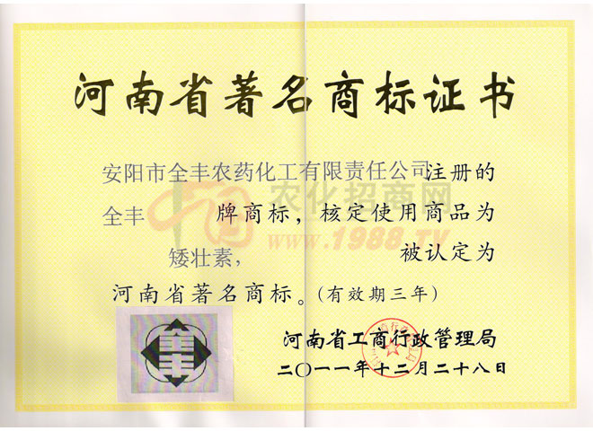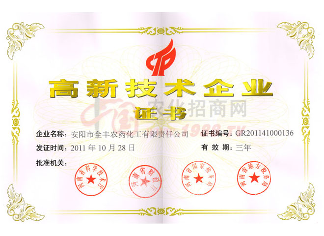 安陽全豐生物科技有限公司于1997年成立,主要從事農(nóng)藥產(chǎn)品的生產(chǎn)和經(jīng)營,是國家定點(diǎn)農(nóng)藥生產(chǎn)廠家,“矮壯素”產(chǎn)品行業(yè)標(biāo)準(zhǔn)起草單位。公司經(jīng)過十年的艱苦發(fā)展歷程,已經(jīng)發(fā)展成為集科研、原藥生產(chǎn)、復(fù)配加工、內(nèi)外貿(mào)易于一體的大中型股份制企業(yè)。