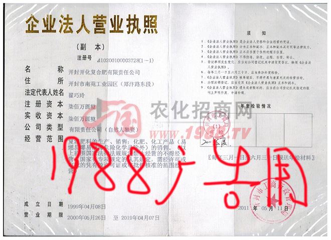 開(kāi)封開(kāi)化復(fù)合肥有限責(zé)任公司自成立以來(lái),經(jīng)過(guò)近十五年的發(fā)展,現(xiàn)已成為集生產(chǎn)各種高、中、低濃度復(fù)合肥、BB肥、有機(jī)肥、有機(jī)-無(wú)機(jī)肥,物流,貿(mào)易等于一體的綜合型企業(yè)。年產(chǎn)各種含量復(fù)合肥、混配肥、有機(jī)肥、有機(jī)-無(wú)機(jī)肥達(dá)30萬(wàn)噸。并榮獲“河南省商標(biāo)”、“河南省創(chuàng)業(yè)杯產(chǎn)品”、“開(kāi)封市優(yōu)質(zhì)產(chǎn)品”、被省農(nóng)業(yè)廳確定為“河南省測(cè)土配方施肥定點(diǎn)生產(chǎn)企業(yè)”、“河南省免檢產(chǎn)品”、2004年再次被河南省技術(shù)監(jiān)督局授予“質(zhì)量之星企業(yè)”稱號(hào)。開(kāi)封市工商行政管理局認(rèn)定我公司為“2011年度重合同守信用企業(yè)”(汴工商[2012]47號(hào));我公司現(xiàn)為“河南省肥料協(xié)會(huì)第二屆理事單位”.